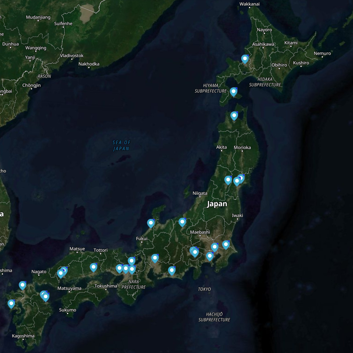 i’ve also manually made a map of every place i’ve ever gone in japan, without the routing between each place.