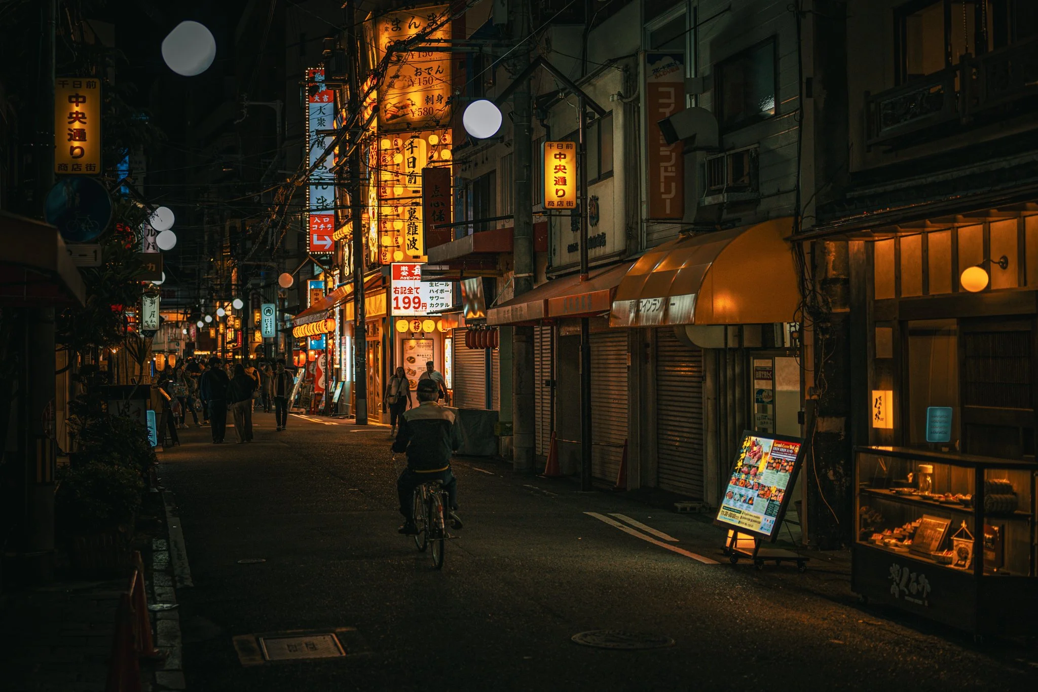 random street in osaka. this is probably the hardest to justify of all the photos i took. theres nothing about it thats particularly excellent compared to all the rest of the images. but i like this image because it really perfectly captures what its like to be out in the street at night. crowded but not too crowded, a mixture of yellow/golden lights and just barely too bright fluorescent lamps everywhere. this photo really feels like japan to me.