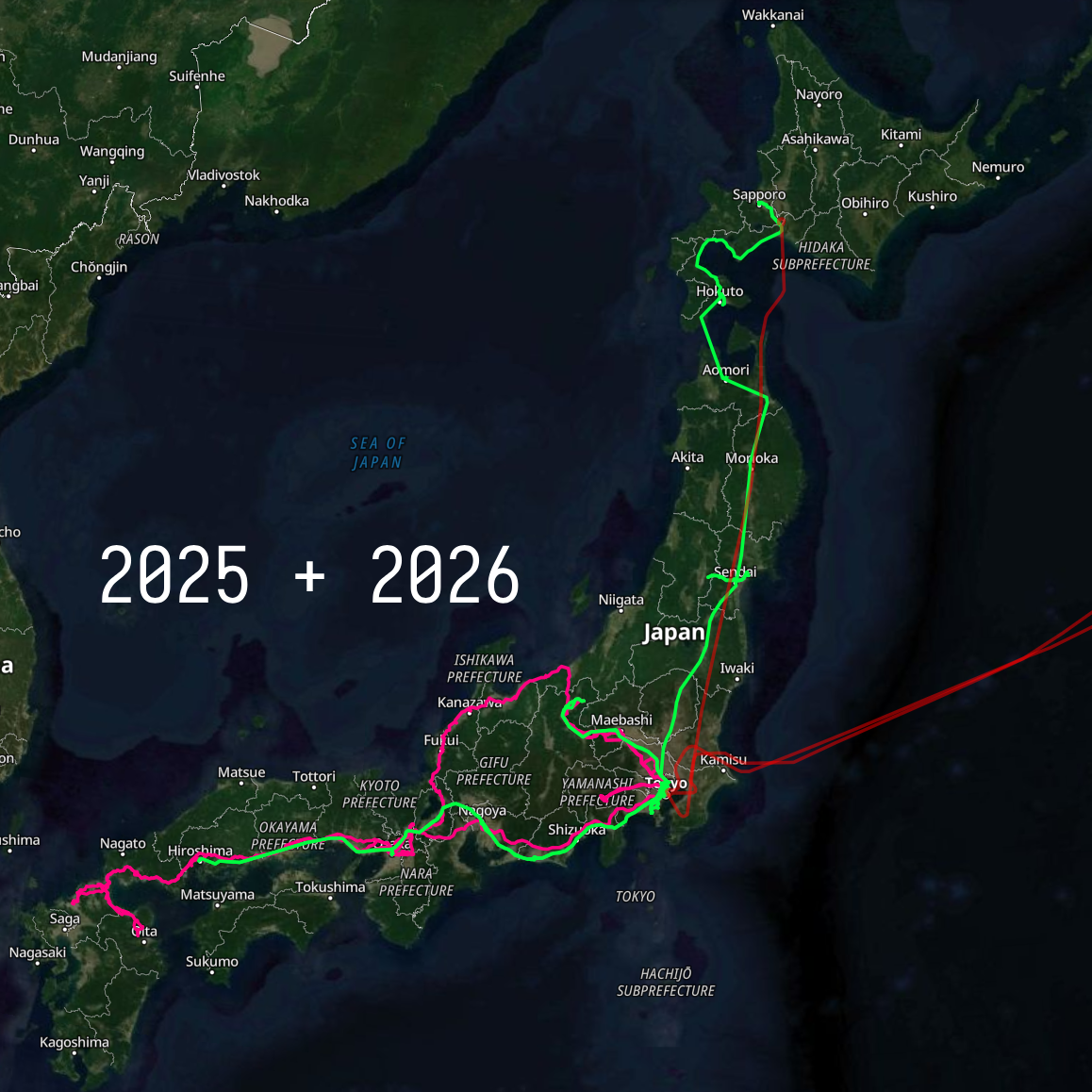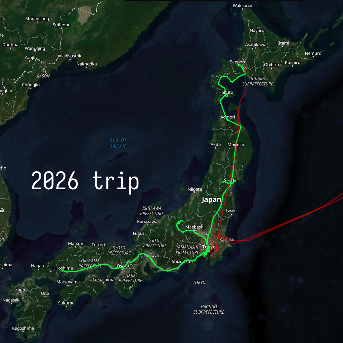 i wish i had used this app in 2024 so i could have a more complete map of everywhere i’ve been. but honestly, the only place i went in 2024 that is not covered by the 2025 and 2026 maps is nagasaki. so it isn’t missing a huge amount of data.