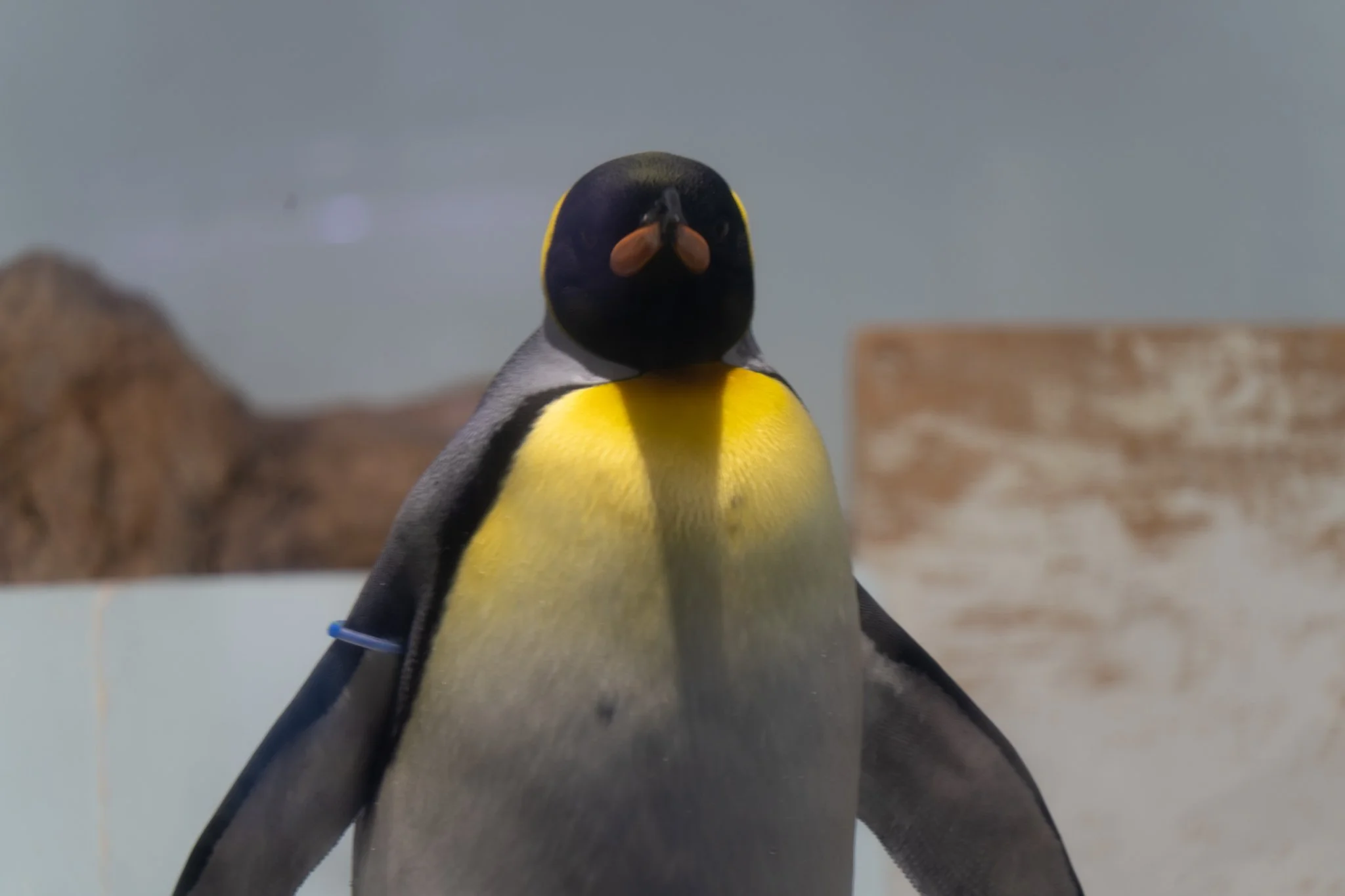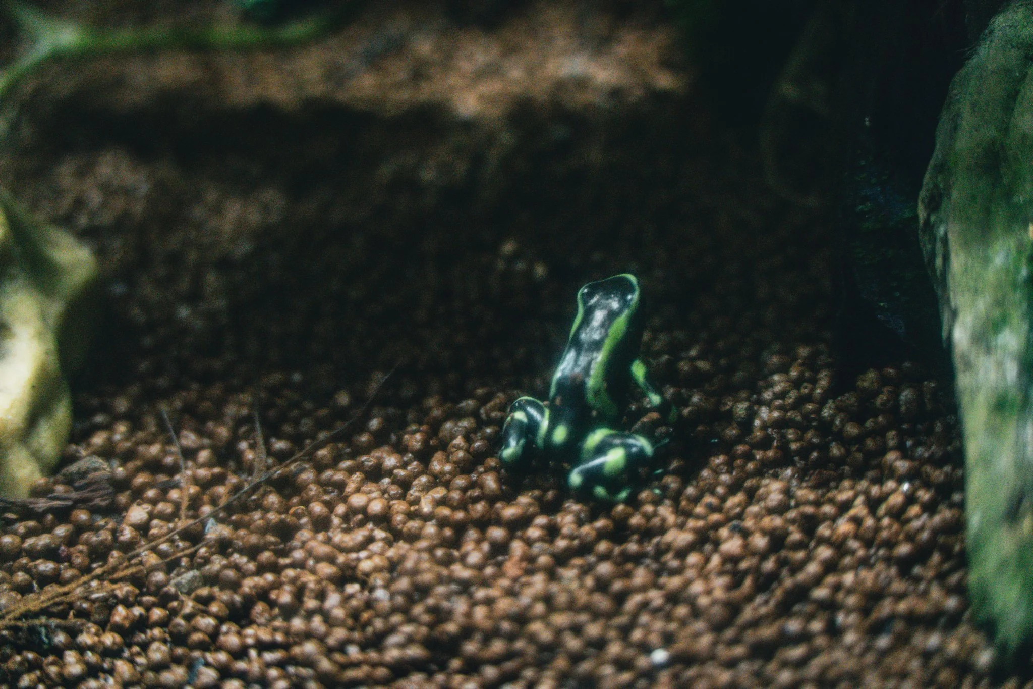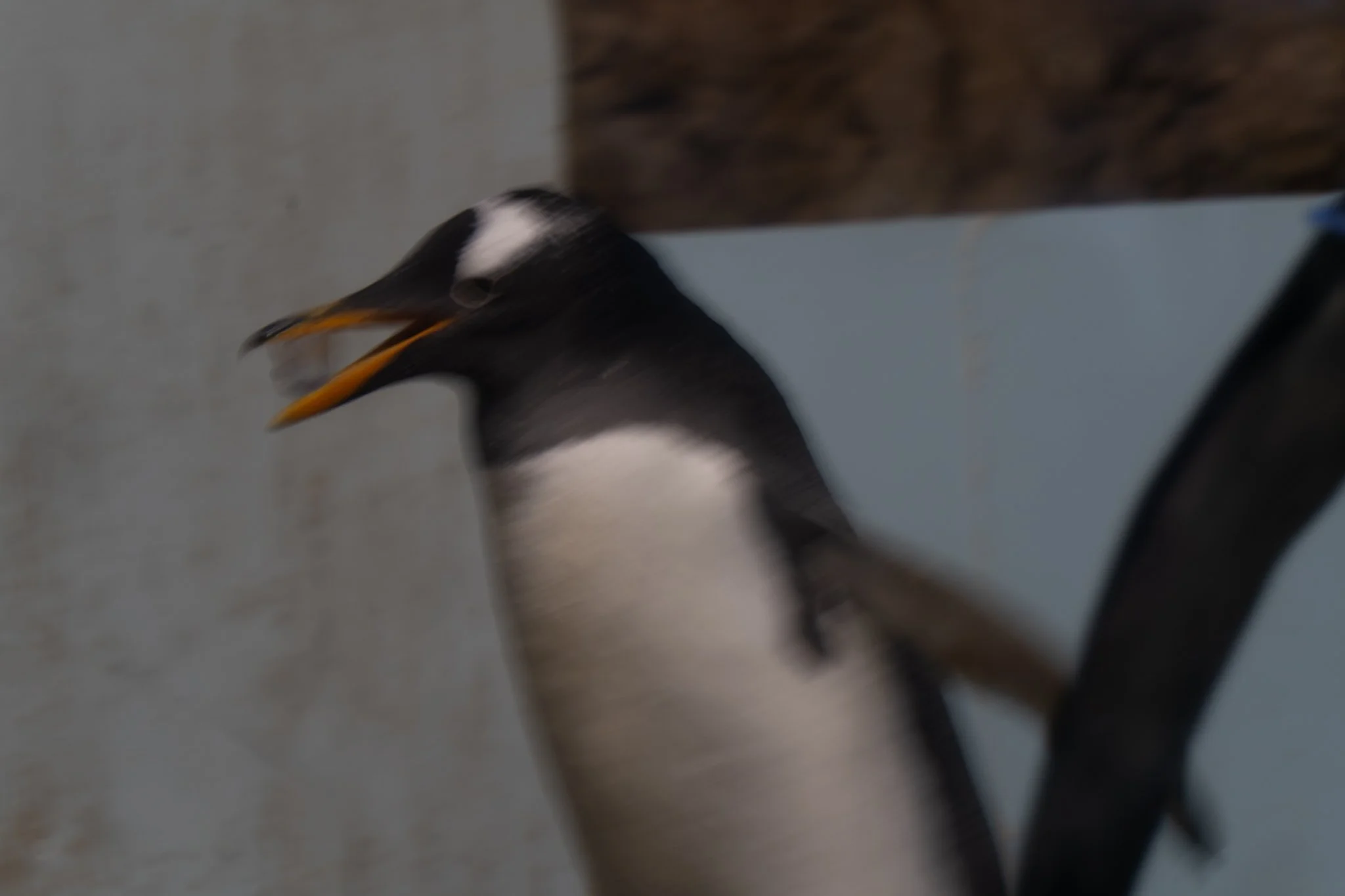 they also have a pretty big penguin section, with 3 different types of penguin. there was a big box of ice cubes in the corner of the room, and one penguin kept running over to it, picking up an ice cube, and then sprinting all over the room as fast as it could carrying the ice cube in its beak, then going back to the box and putting the ice cube away. then it would pick up a different one and do it again. we watched it do this for like 20 minutes. it was very fast, so i had a hard time getting a picture of him. the one i settled on is still very blurry. they also had some really cute poisonous frogs.