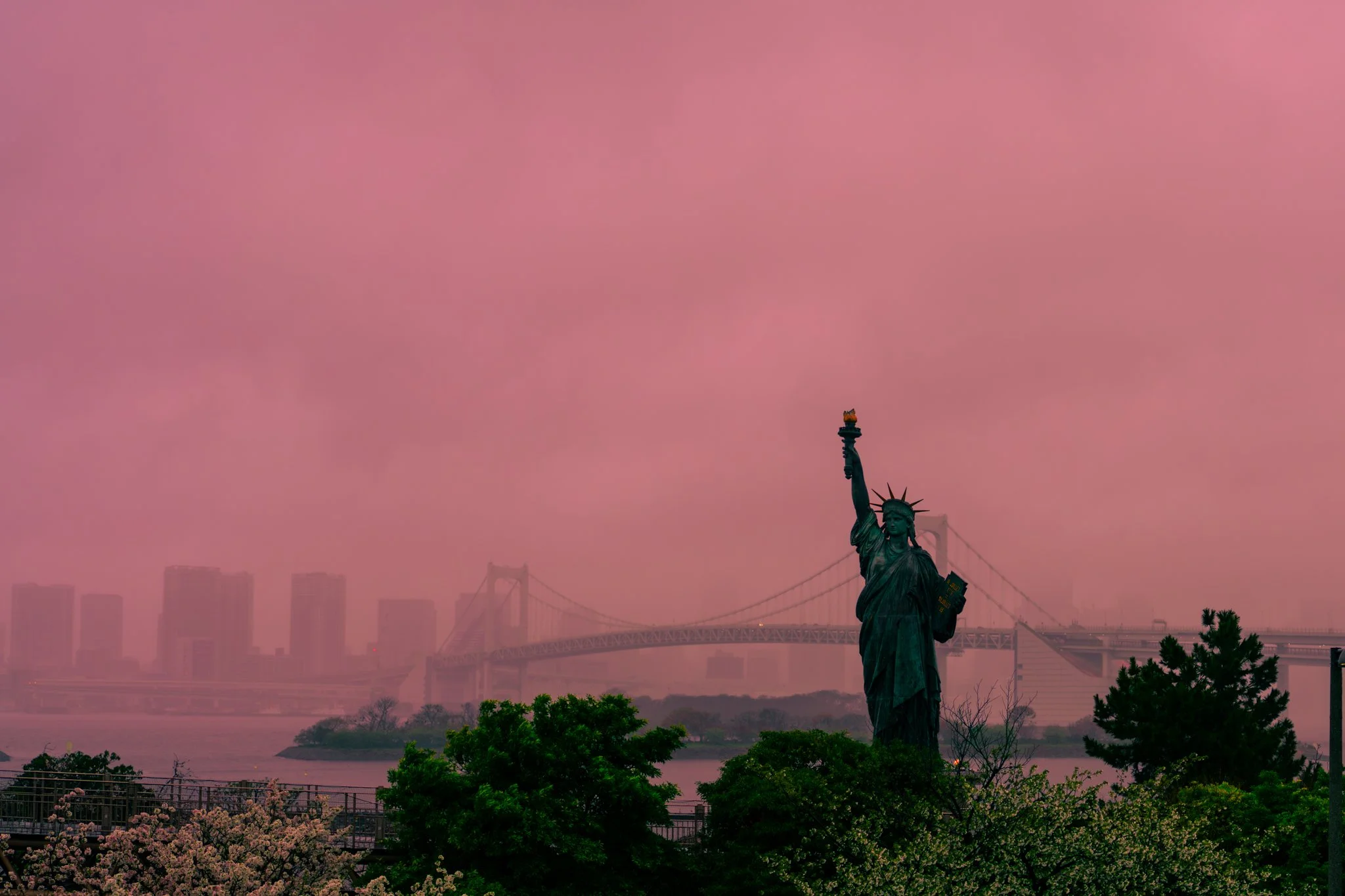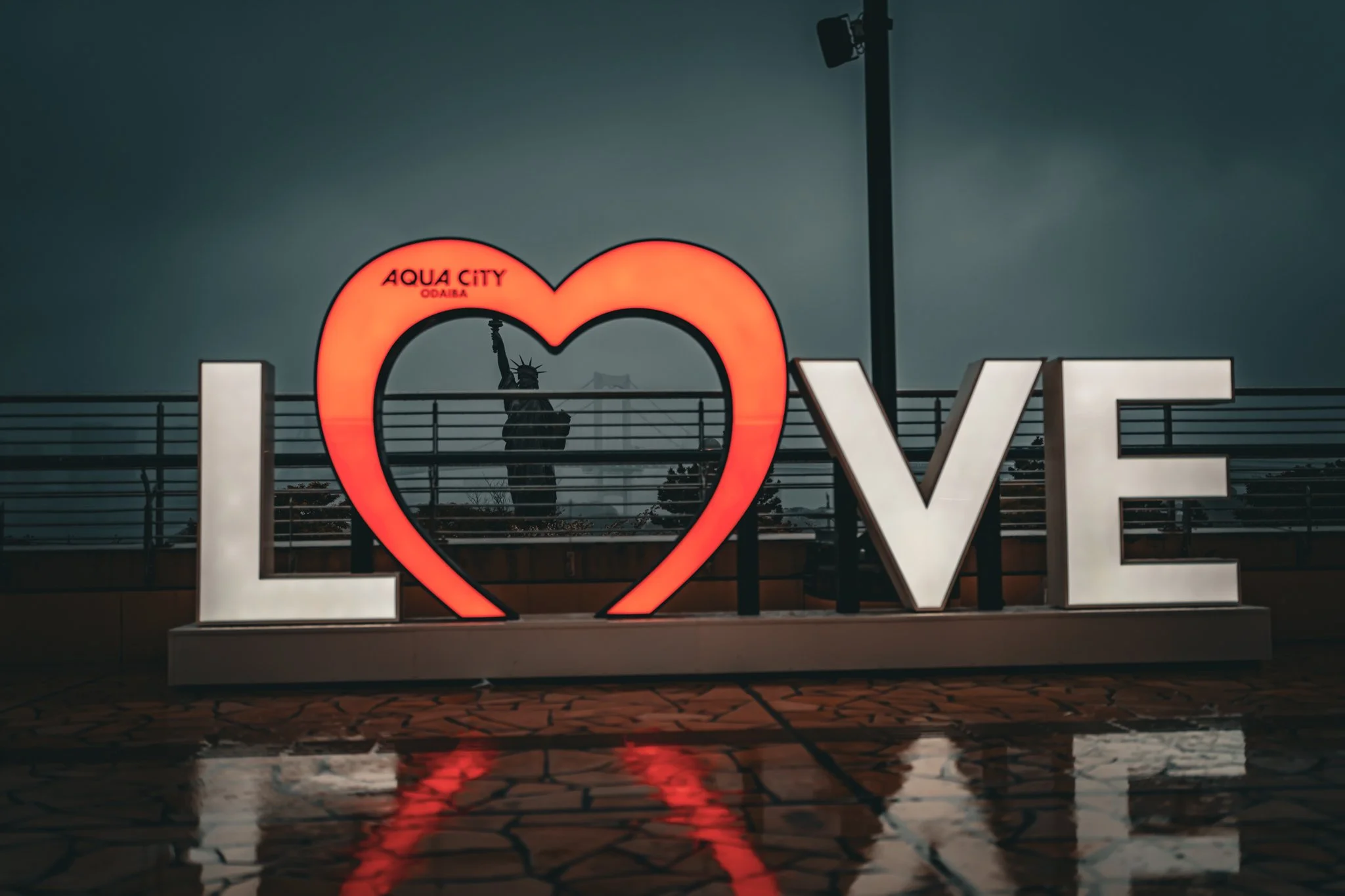 we still had a couple hours to kill, so we started walking towards the train we needed to take, but stopped to go visit a second nearby mall called aqua city. they have a statue of liberty outside for some reason, which led to maybe the best photo i have taken this trip so far: