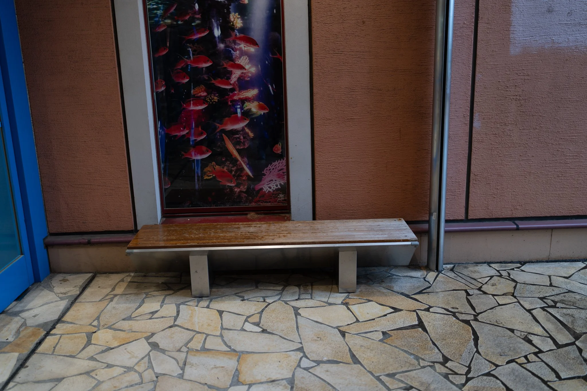 we found a little covered area with a bench right outside the mall to sit and relax at for a bit. this is a boring photo, just a bench. but this bench was a life saver. a place to sit outside without getting rained on. i will forever love this bench.