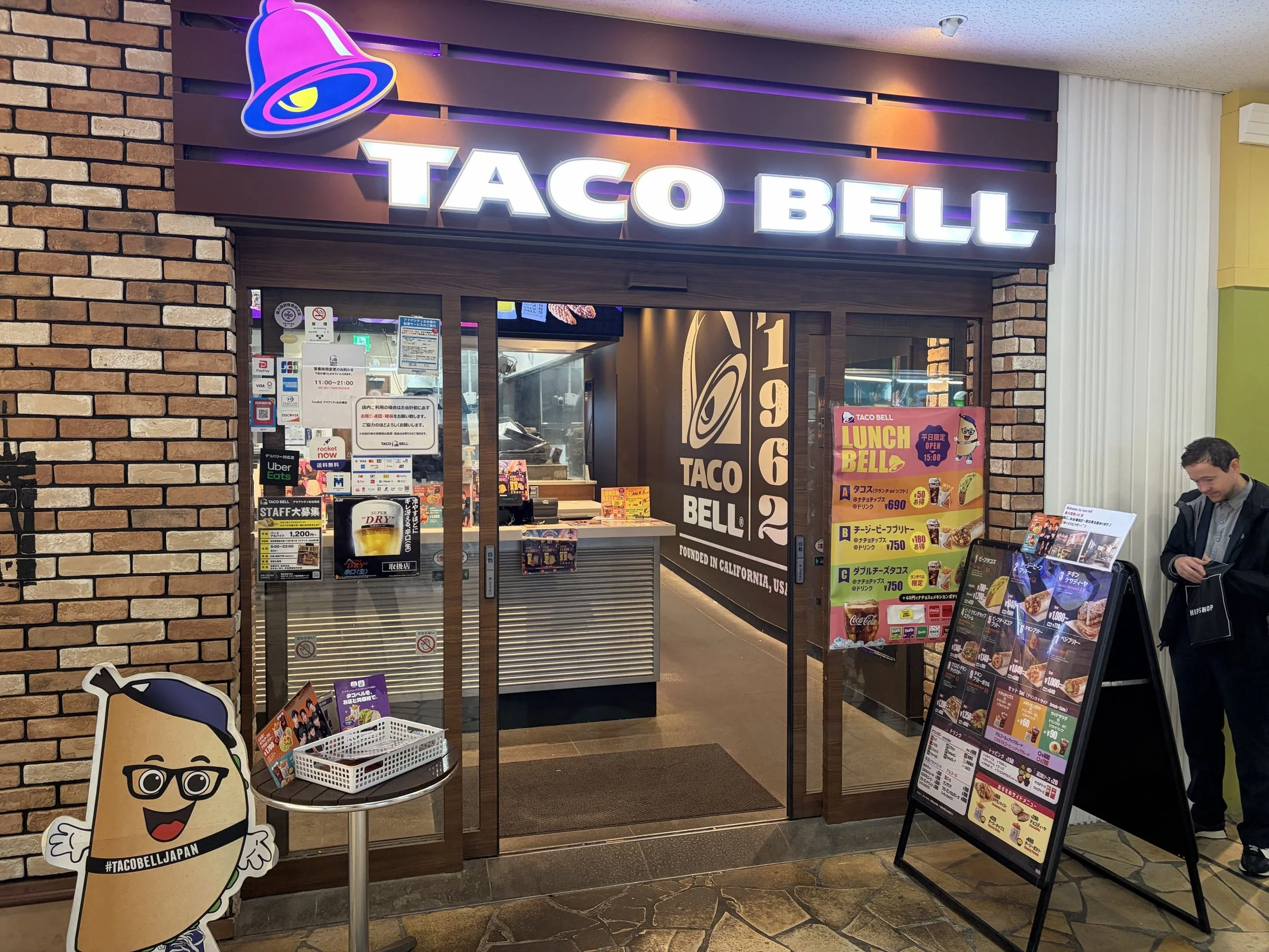 we didn’t eat here, but i think it is interesting that you can order beer at taco bell here. asahi super dry, the people’s beer.