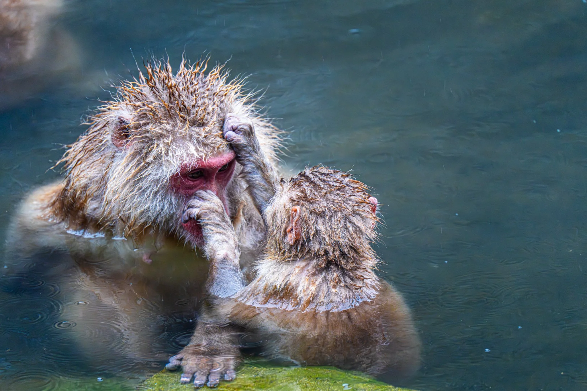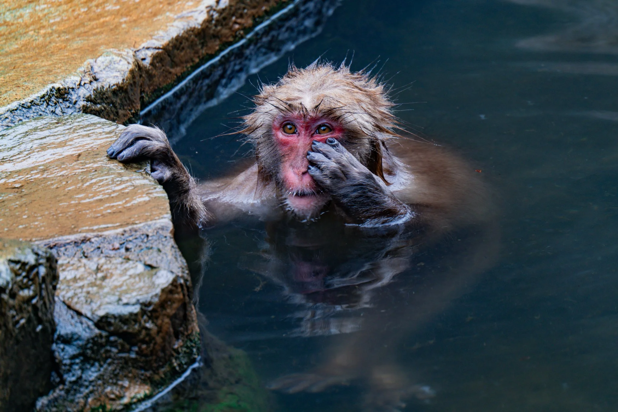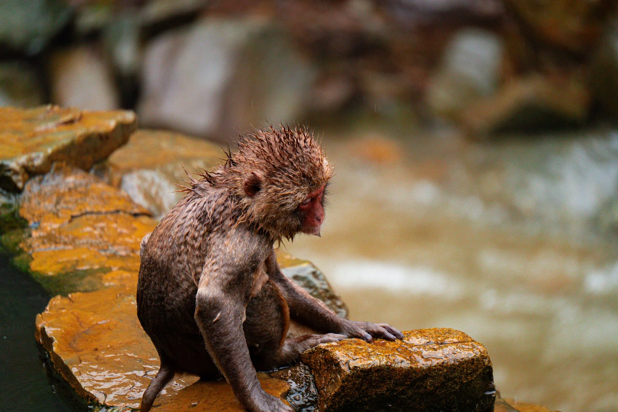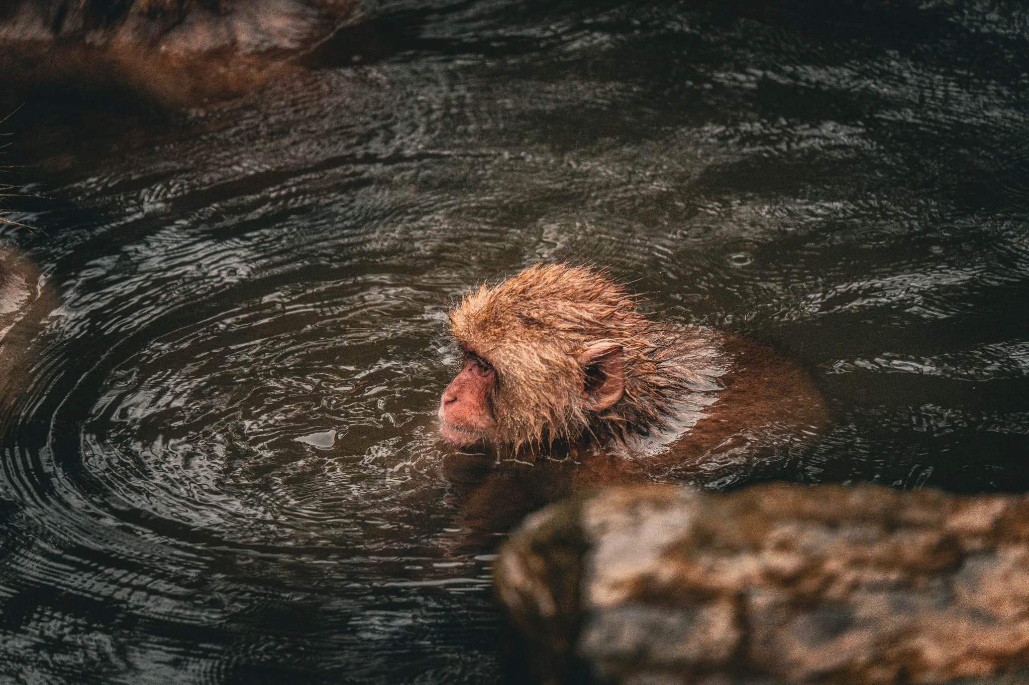 there were far far fewer monkeys this year than there have been the previous years. i would say there were around 20 or 25 monkeys there. but they were almost all in the hot spring this time, because it was so cold. and there were a couple very tiny precious baby monkeys, because apparently they give birth in the early spring.