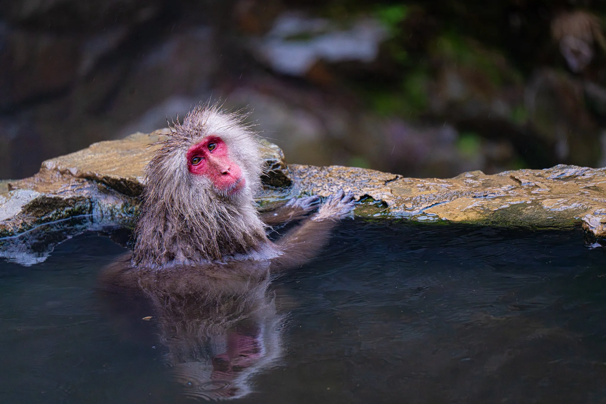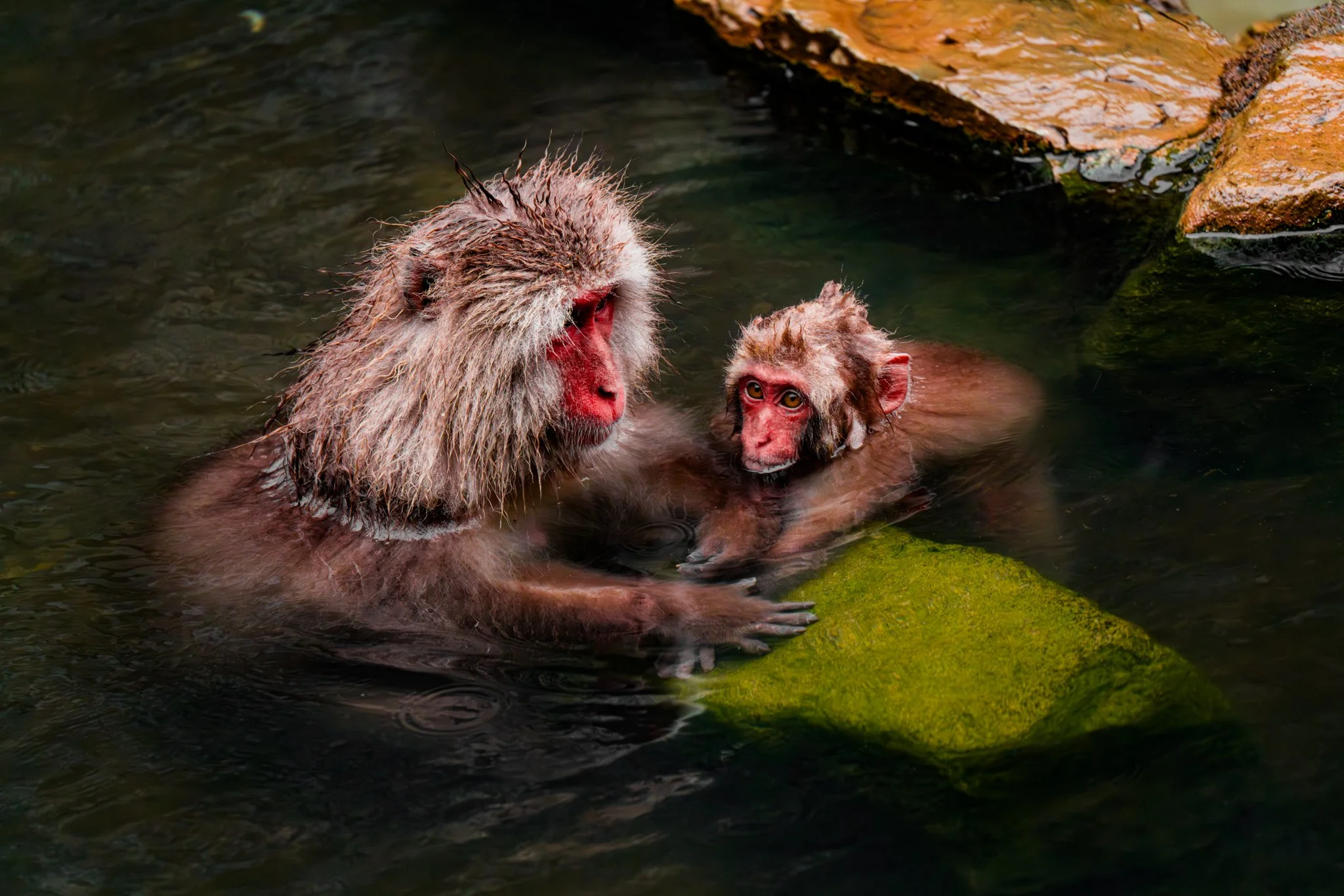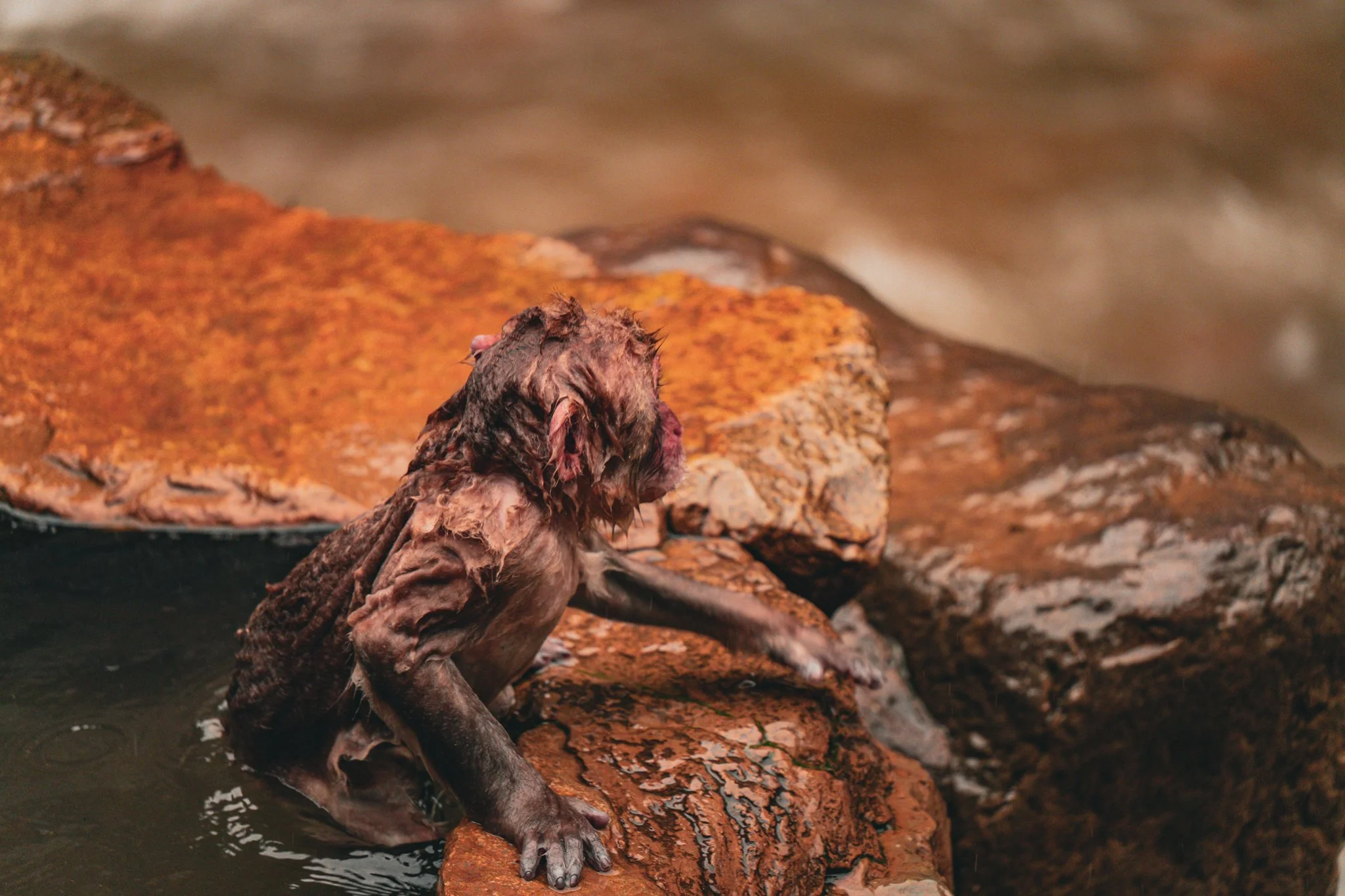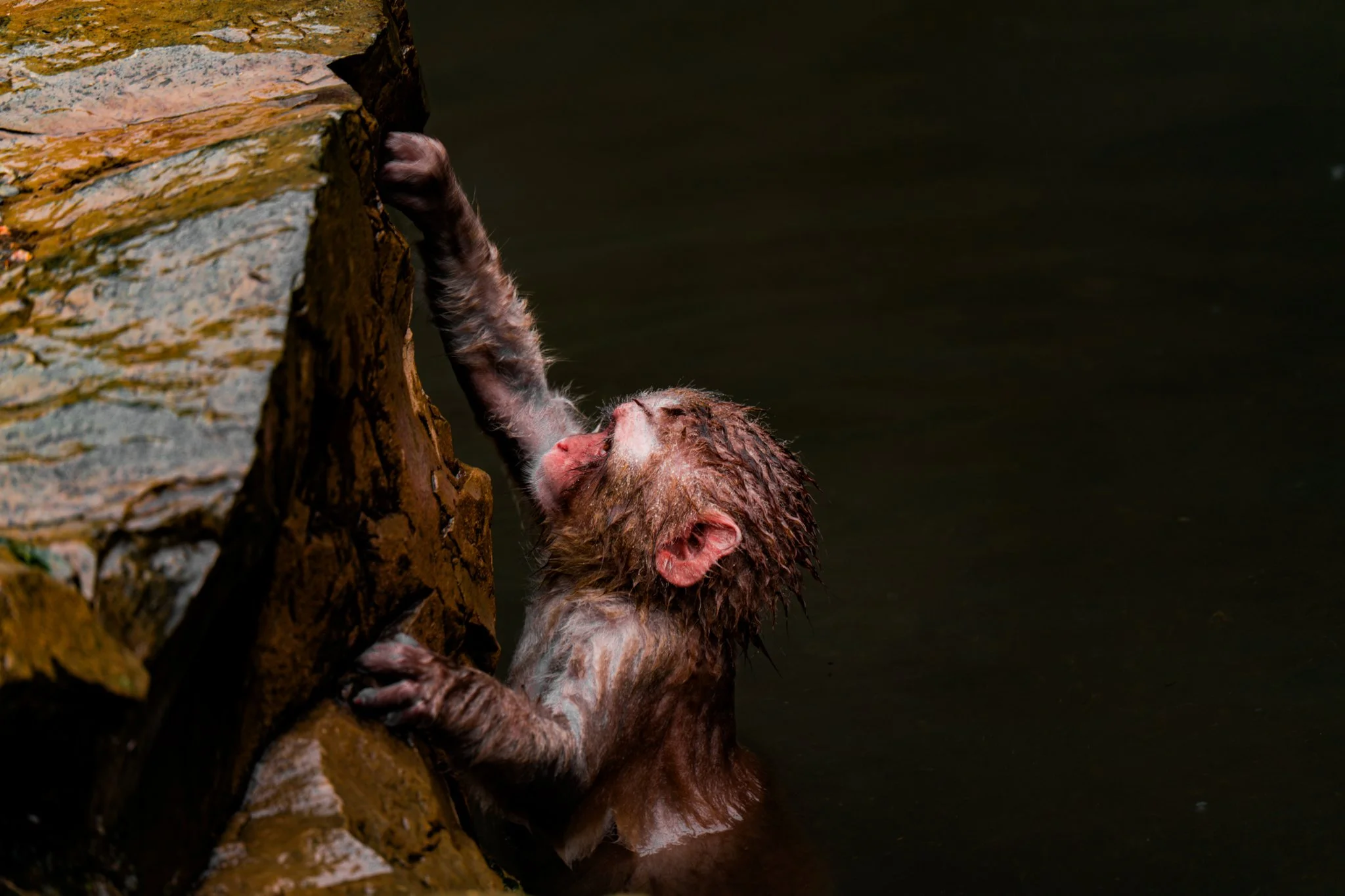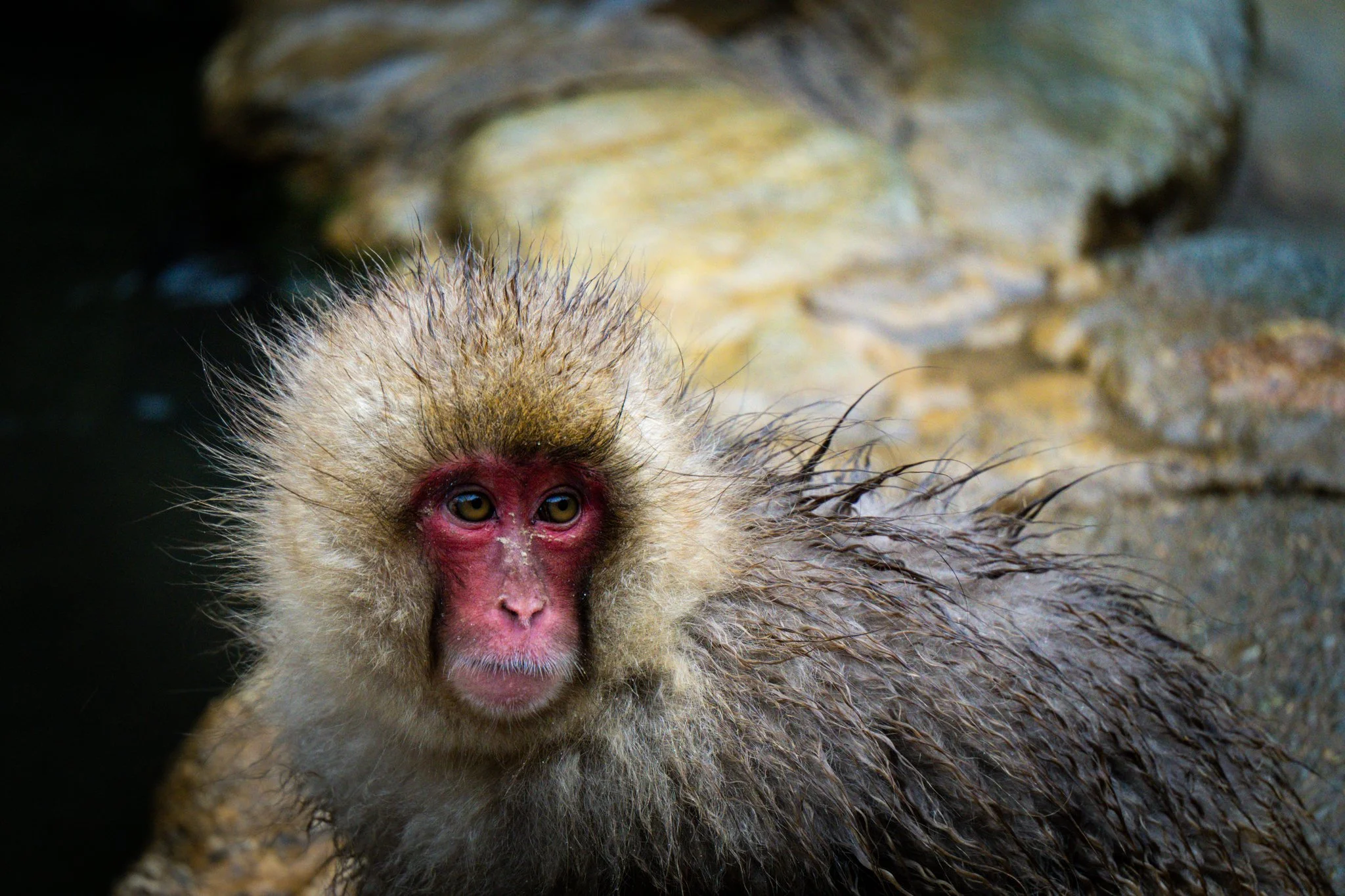there were far far fewer monkeys this year than there have been the previous years. i would say there were around 20 or 25 monkeys there. but they were almost all in the hot spring this time, because it was so cold. and there were a couple very tiny precious baby monkeys, because apparently they give birth in the early spring.