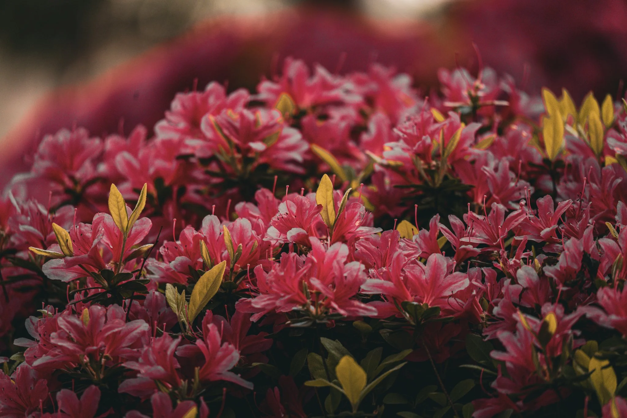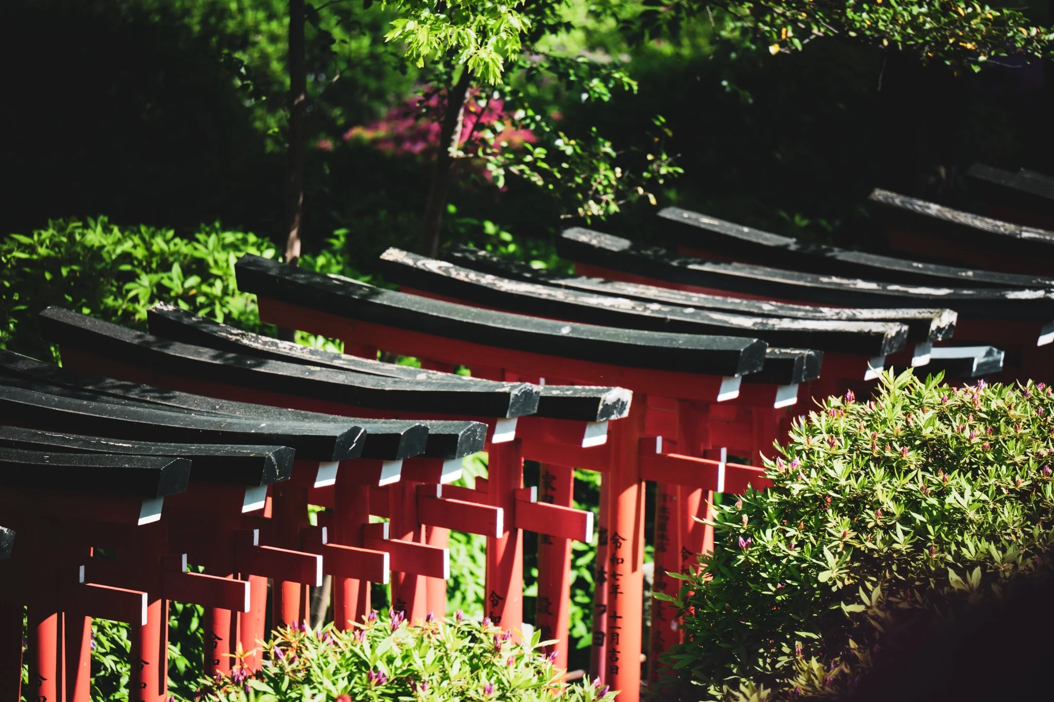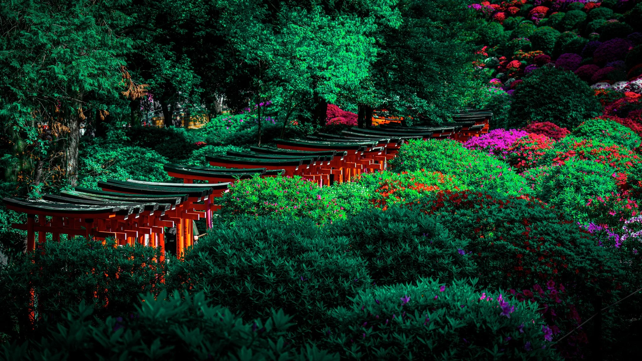 the shrine is famous for an azalea festival that is currently happening there. hundreds of flowers in bloom make this the ideal time to visit.