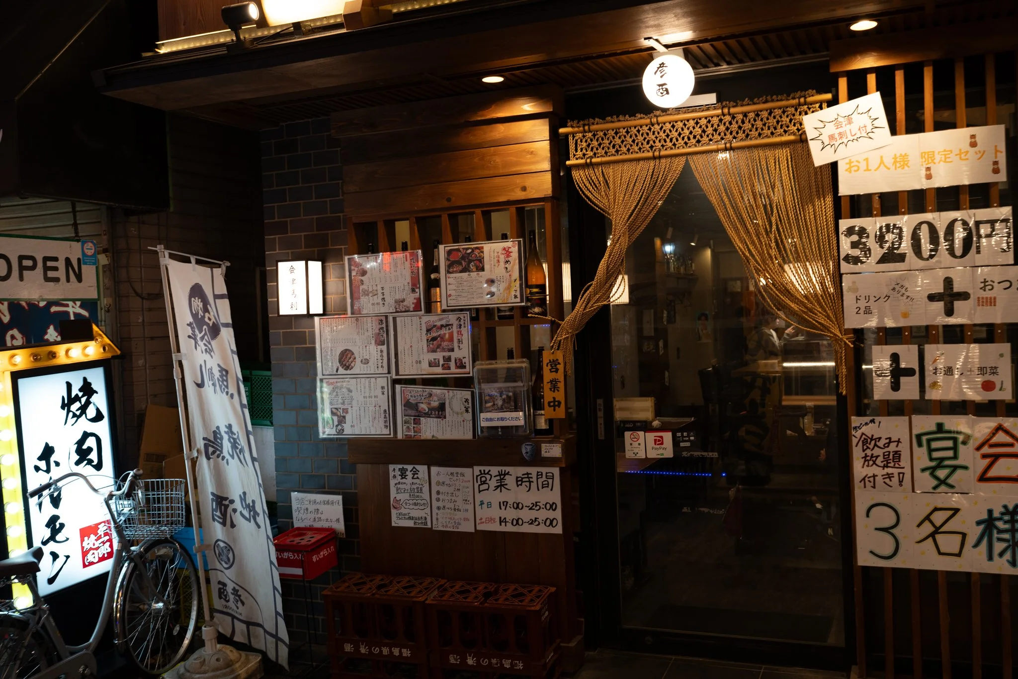 one thing i haven’t really done much of in japan is go to izakayas. its something i wouldnt really do alone, since i am not very good at japanese. but with friends it feels easier to do. so we looked around our area for an izakaya, and we found one like 12 minutes away. this place rocks. they had an english menu. we got a couple beers and lemon sours, some yakitori (chicken skewers), and had a great time. we will definitely end up back here again within the next few days. they have a bunch of horse meat dishes, including horse hearts. gotta try that for sure.