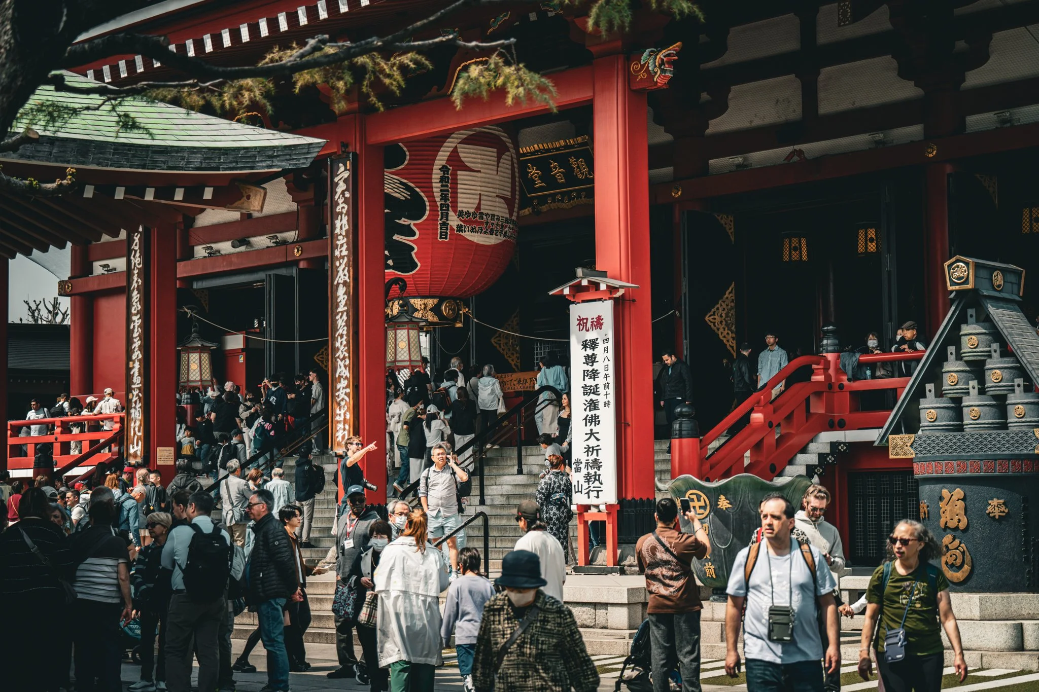 this area is like the most “tourist hell” place in all of tokyo. its a really beautiful spot right by the suminda river, with a very cool temple and a bunch of little shops and stands. definitely a place everyone visiting tokyo for the first time should see, but it can be kind of a lot.